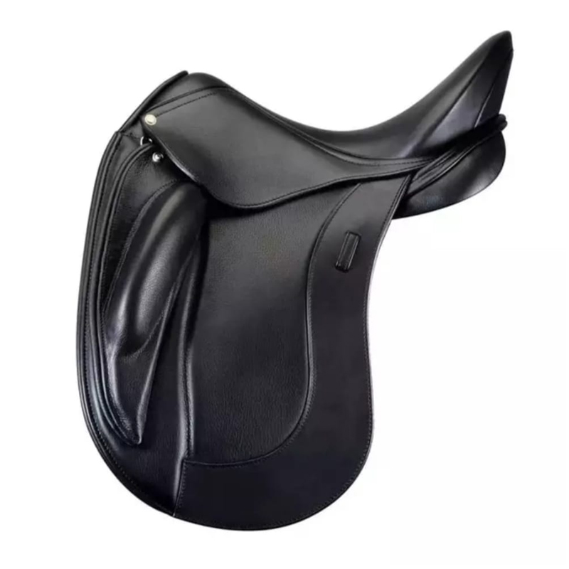 Jumping style close contact padded knee roll medium depth seat front d ring polished leather girth straps copolymer tree |
